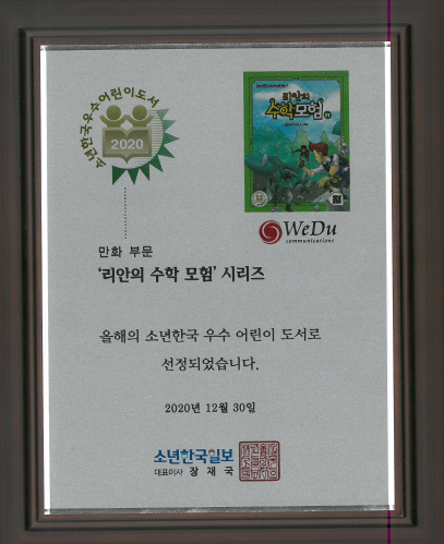 2020 소년한국 우수 어린이 도서 선정 페이지 정보 작성자 WeDu 댓글 0건 조회 9,085회 작성일 21-12-31 13:00 본문 2020-12-30 '리안의 수학 모험' 시리즈 우수 어린이 도서 선정 소년한국일보 대표이사 List Previous2021 4IR AWARDS 대상 21.12.31 Next2020 기술혁신 우수기업 21.12.31