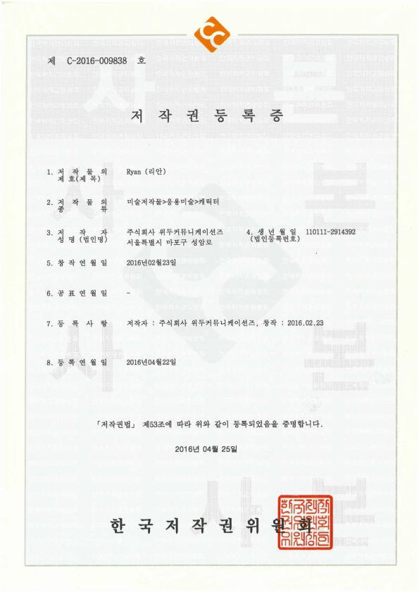 [한국/저작권] 리안 페이지 정보 작성자 WeDu 댓글 0건 조회 5,742회 작성일 19-05-30 19:08 본문 2016-04-22 저작권 C-2016-009838 리안 / 미술저작물>응용미술>캐릭터 List Previous[한국/저작권] 아리스 19.05.30 Next[한국/저작권] 나무트 19.05.30
