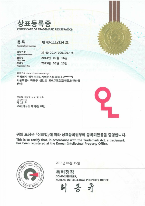[한국/상표] OLL 16류 페이지 정보 작성자 WeDu 댓글 0건 조회 6,000회 작성일 19-05-30 18:59 본문 2015-06-15 상표 제 40-1112134호 16류 List Previous[한국/상표] OLL 41류 19.05.30 Next[한국/상표] OLL 09류 19.05.30